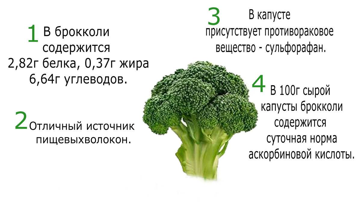 В дополнение к питательным веществам, перечисленных выше, капуста брокколи также содержит фитонутриенты, один из которых — сульфорафан — это мощное, естественное оружие против рака. Существует много исследований, которые доказывают, что диета, богатая брокколи может помочь защитить организм от рака и поддержать сердце и желудок здоровыми.Брокколи однолетнее растение семейства капустных, темно-зеленого цвета, чем-то напоминает цветную капусту.