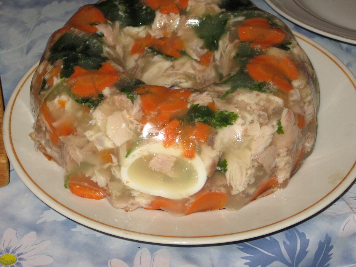 – кусочки мяса, залитые сгустившимся до желеобразного состояния бульоном.