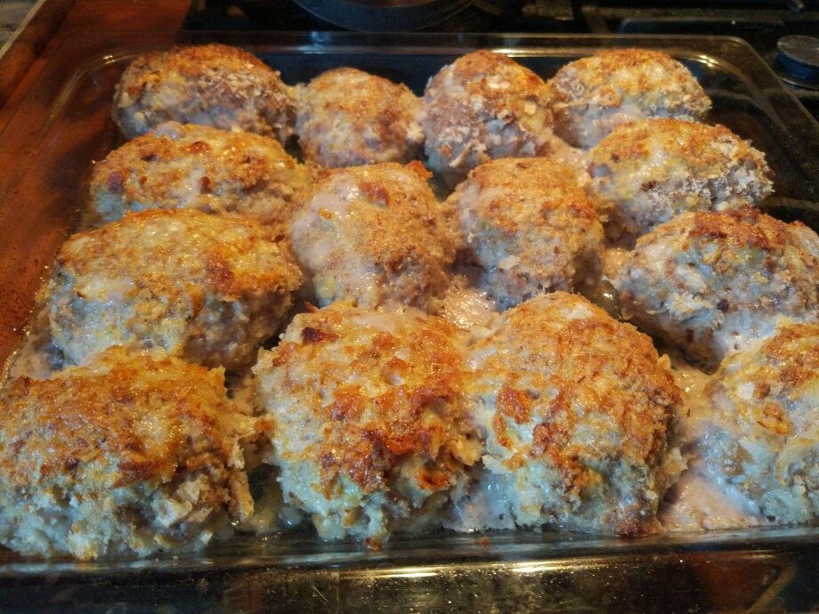 - Скатайте смесь в маленькие шарики размером со столовую ложку с горкой. Обвалять тефтели в кукурузном крахмале, чтобы они покрылись слоем.