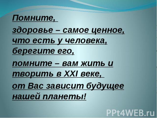 Всем известно, что для человека самое ценное — это жизнь. Добавим еще одно слово: что для человека самое ценное — это Его жизнь. Поэтому надо ценить это самое ценное — СВОЮ жизнь. И конечно, важно любить людей, которые составляют значительную часть ВАШЕЙ ЖИЗНИ — близких, родственников, коллег друзей, подруг, соседей, знакомых, всех, кто хоть в какой-то мере имеют отношение к ВАШЕЙ жизни.