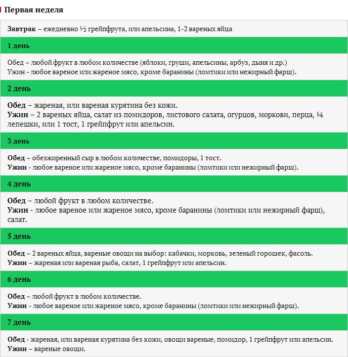 Первая неделя — подготовка организма к новому рациону.