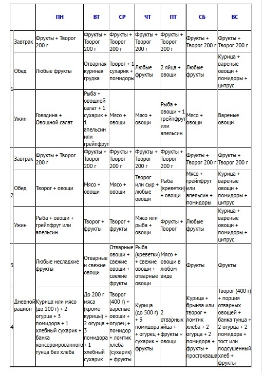Диета Магги — меню на 4 недели в таблице