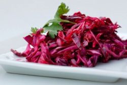 1/2 кочана красной капусты4 сливы (или 2-3 яблока)2 горсти тыквенных семечек (очищенных)оливковое масло — 2 ст.л.2 средние свеклы (предварительно отварить в кожуре 30 минут)яблочный уксус — 1 ст.л.соль и перец