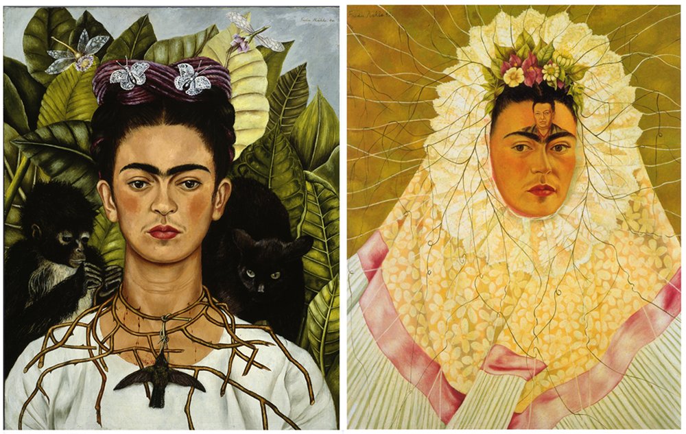 Помимо этого, над кроватью начинающей художницы висело огромное зеркало – так, чтобы больная всегда могла видеть своё отражение. Так и появились первые автопортреты, ставшие впоследствии основным жанром её творчества. Как признавалась художница, себя она знает лучше, чем что-либо ещё в этом мире.