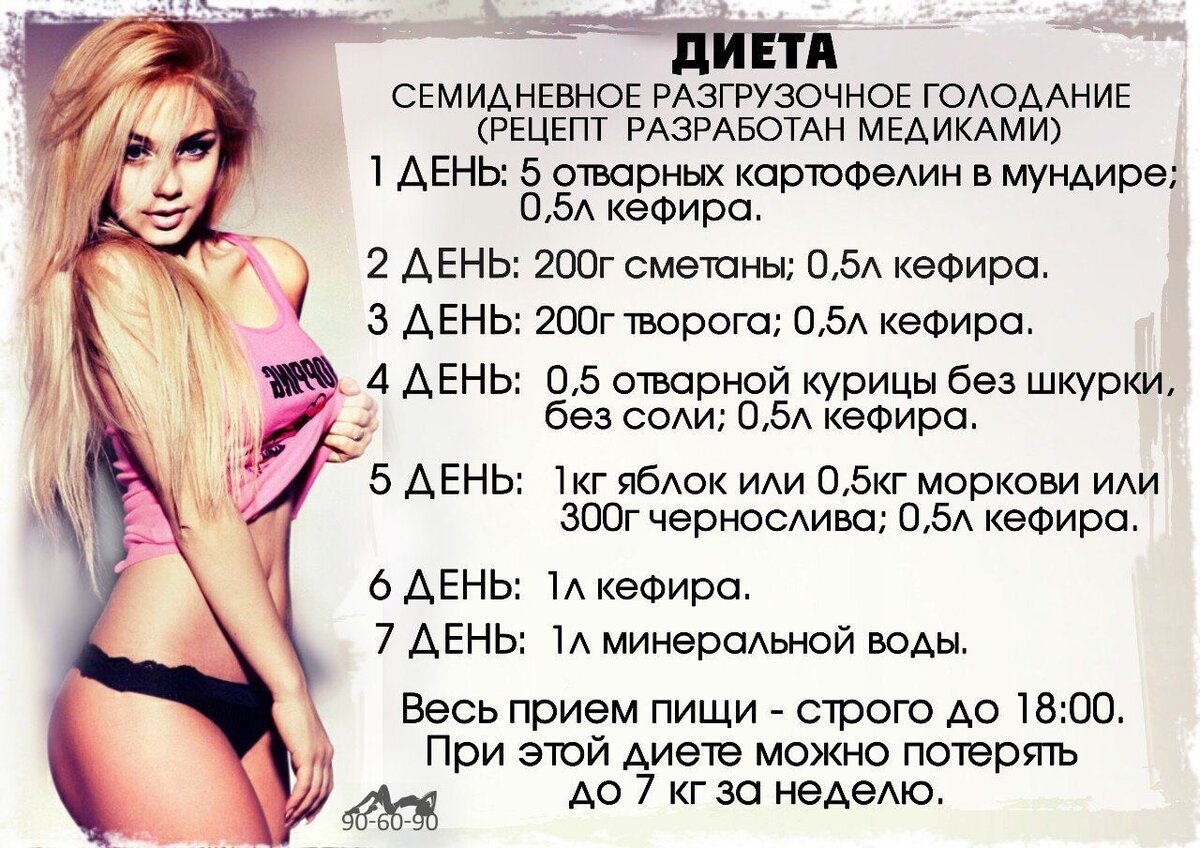- Обязательно нужно устраивать разгрузочный день, хотя бы 1 раз в 2 недели. Пусть он будет монокомпонентным. Можно остановиться на определенном продукте, например: низкокалорийном твороге, кефире, фруктах. Не забывайте про воду. Другими жидкостями её заменять нельзя.