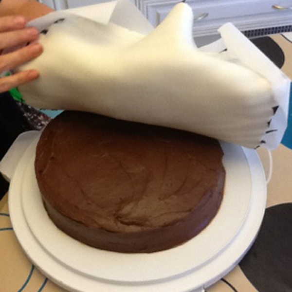 Подготовка торта Сыр с мышками – покрытие его мастикой