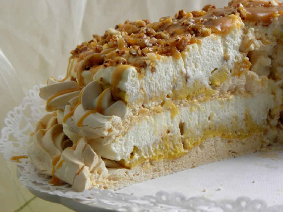 Торт Наполеон со сливочно-карамельным кремом, который переслаивает тонкие и невесомые коржи, в дополнении с воздушным карамельным муссом, по-новому открывает, казалось бы, такой знакомый вкус любимого десерта.