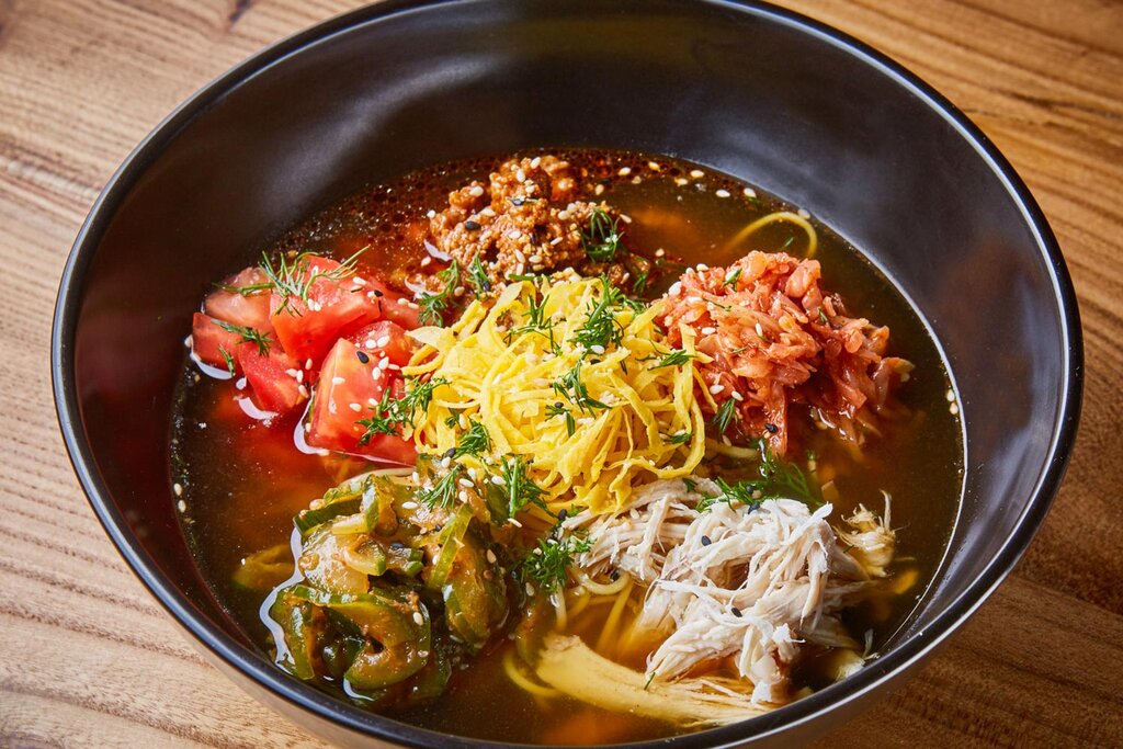 Кукси по-корейски — удивительное блюдо, потому что оно сочетает в себе свежий салат, сытный гарнир и наваристый суп. Могли ли вы раньше представить, что одно блюдо может заменить целый обеденный стол? При этом кукси очень легкий, но в то же время достаточно солидный. А вкус супа по-корейски просто божественный! Тонкая лапша и яичные оладьи прекрасно гармонируют со свежими овощами, а жареное мясо делает суп очень насыщенным и сытным.