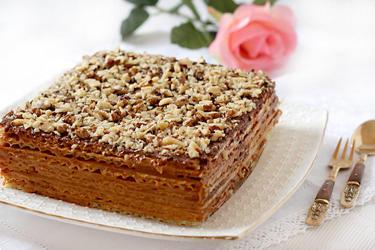 Моя мама когда-то постоянно готовила его на храмовый праздник, потому что он напоминает вкуснющее печенье со сгущенкой и названиями этого торта не было, поэтому я ласково называю его «Печенько», потому что он напоминает вкуснющее печенье со сгущенкой и орехами.