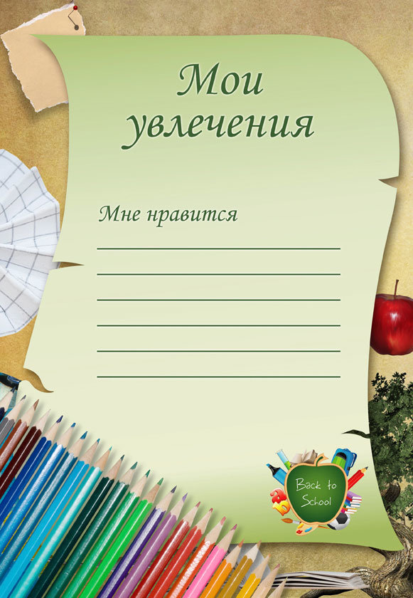 Мои увлечения (Мои интересы) – на данной страничке нужно рассказать, что ребенок любит делать, чем увлекается. По желанию ребенка можно рассказать о кружках/секциях, куда он дополнительно ходит.