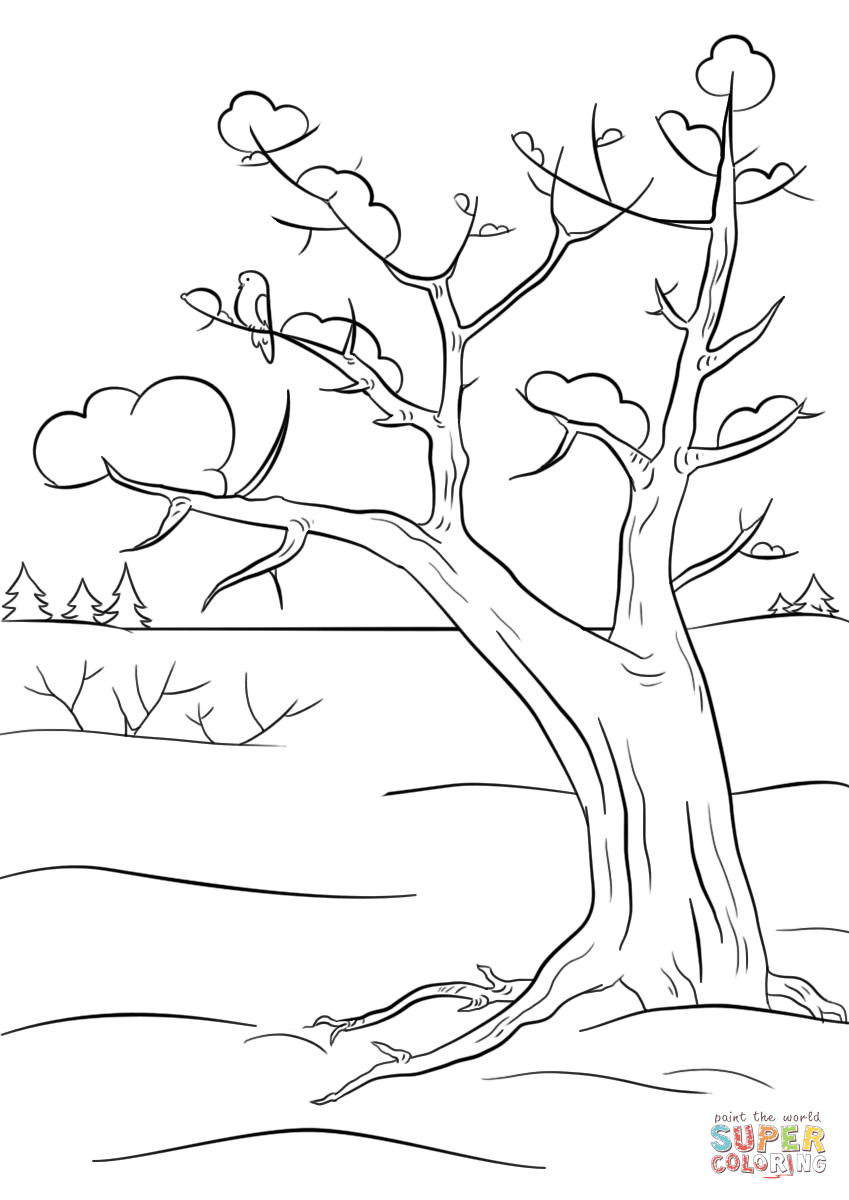 Итак, вот раскраска — дерево зимой. Пока пусть веток будет немного.