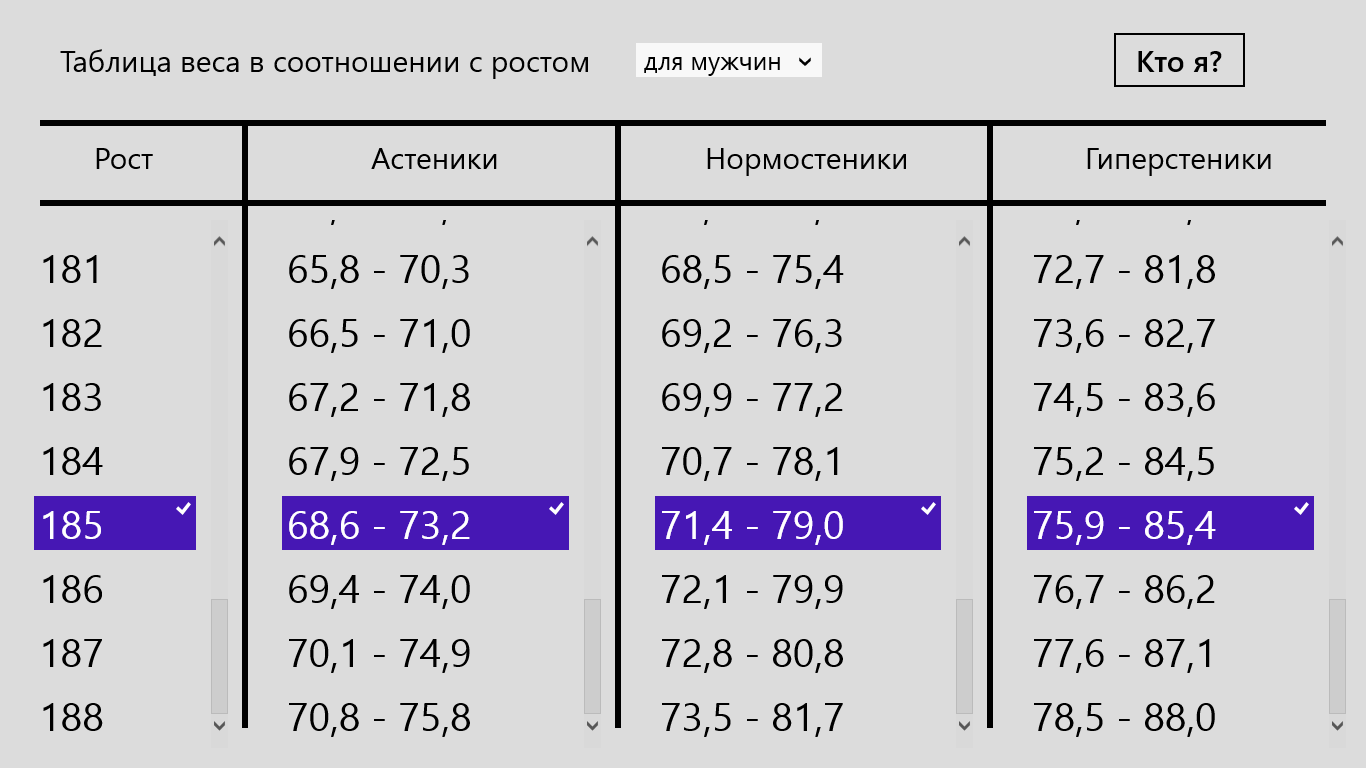 WW Диапазоны здорового веса являются общими рекомендациями для мужчин и женщин. Если у вас есть определенные проблемы со здоровьем или вы находитесь за пределами нашего диапазона роста, мы рекомендуем вам обсудить подходящий диапазон веса с вашим терапевтом.