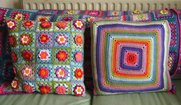 Очень оригинально смотрятся диванные аксессуары в виде цветов,