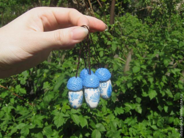 Жёлуди в стиле Гжель, декорированные в технике декупаж.