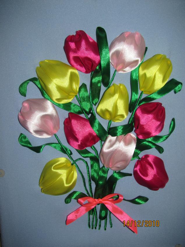 Мастер-класс. Картина "Тюльпаны" из Атласных Лент. – Ярмарка Мастеров