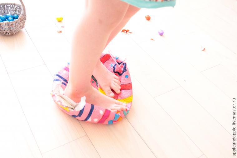 - С полностью высохшего шара срезать верхушку и вынув лопнувший воздушный шарик, заполнить его конфетами или небольшими игрушками;