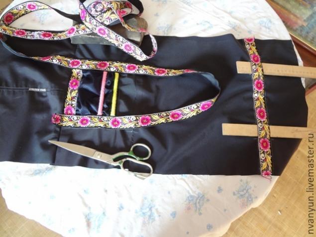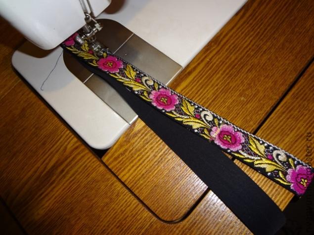 Затем со стороны необработанных краев пристрочила по всей длине тесьму.