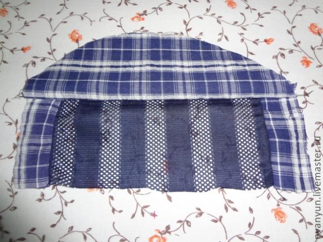 Я сшивала сразу по 3 детали: подкладка, сетка и основная ткань. Укладывая лицевой стороной на сетку.