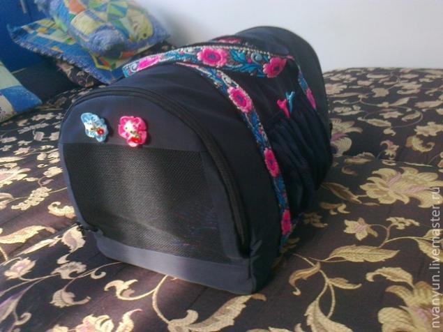 Такую сумку, при наличии времени и швейной машинки, сможет сшить каждый. Выкройка проста и понятна, экономия денег ощутима. В конечном итоге получается вот такая аккуратная сумка для кошки.