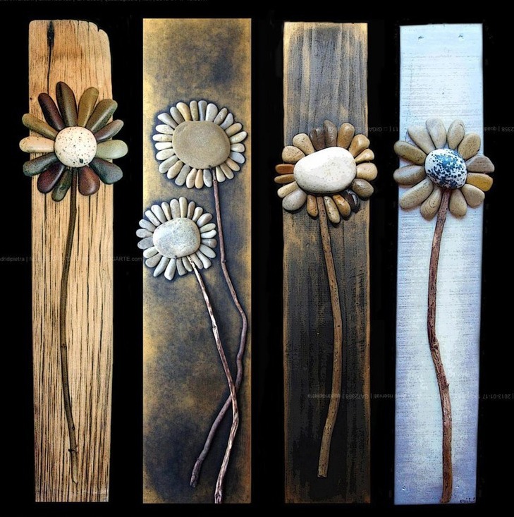 Очень красиво смотрятся обьемные панно из гальки и камней.