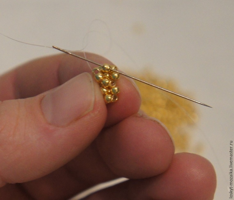 Набираем на иголку еще 2 бисерины и делаем еще одно колечко.