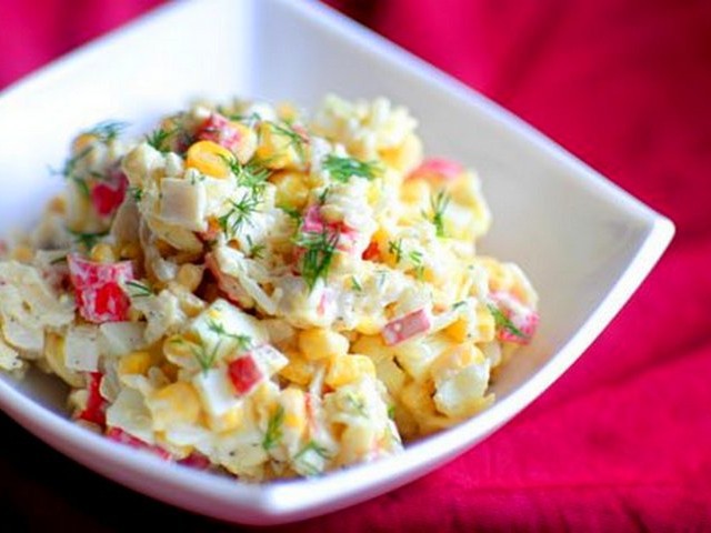 Классический рецепт салат с крабовыми палочками и кукурузой