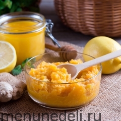 Лимон — 2 шт. Тыква — 300 г Имбирь — 20 г (кусочек 5-7 см.)Мед — 150 г