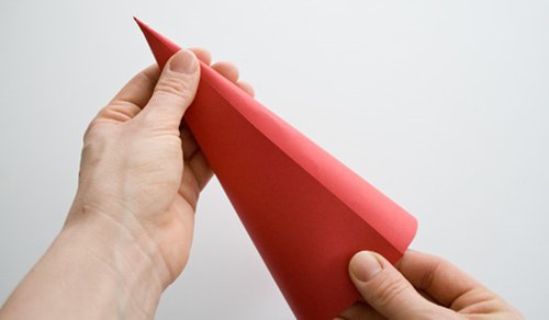 - Материал, из которого сворачивается конус, нельзя сминать. Лист должен «держать форму», только тогда получится кулёк, выполненный по всем правилам.