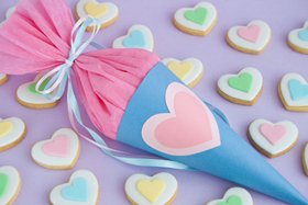 4. Украсьте торжественный кулёк самоклеющимися колоритными картинами.