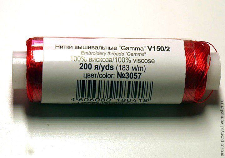 Для этого нам понадобятся нитки. Можно использовать вискозу или шелк. Можно попробовать и полиэстер, но придется поискать блестящие нитки, так как в основном полиэстер продается матовый, что нам не подойдет. Полиэстер мне нравится тем, что его не приходится отпаривать. Ни в коем случае нам не подойдут хлопковые нитки, так как они не блестят и будут путаться.