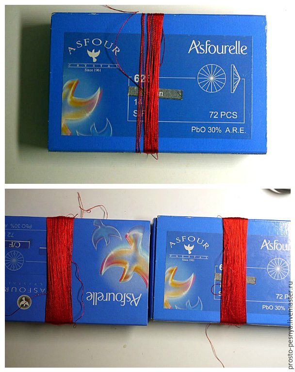 Дополнительно для декора (фото не прилагаю, так как это всё на ваш вкус): бисер miyuki delica 11, у меня оттенок DB-0042; нитки в тон бисера; 2 соединительных колечка диаметром 6 мм. либо: колпачки на кисти на ваш вкус; пины в тон колпачков подлиннее; пару бусинок 8-12 мм (у меня 8 мм). Итак, приступим Мы будем делать сразу две одинаковые кисти для сережек, и нам нужно, чтобы они были одинаковой толщины. Берем основу для намотки кистей (у меня коробочка) и сматываем туда на глаз половинку катушки или чуть меньше (я мотаю всегда меньше половины) для того, чтобы равномерно распределить нитки по двум основам. Катушку я приспосабливаю в карандашницу, как на 1 части фото. Хотя с вискозой иногда случаются неприятности как на 2 части коллажа — распускание катушки. Мне помогает переворачивание её «вверх тормашками», чтобы при разматывании она закручивалась в другую сторону.