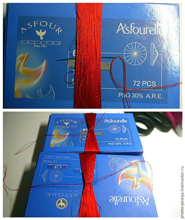 После того, как намотали, закрепите конец нити скотчем или тентой, чтобы ниточки не расползались.