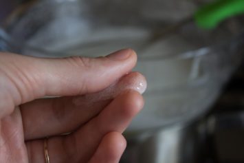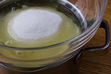 Наша задача — дождаться, пока сахар полностью растворится. Можно попробовать чистыми сухими пальцами: если кристаллики не ощущаются, значит, готово!