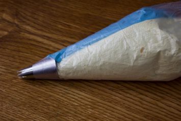 Выложить в кондитерский мешок с насадкой (у меня Wilton D2).