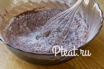 - В отдельной миске смешиваем муку, крахмал и какао.