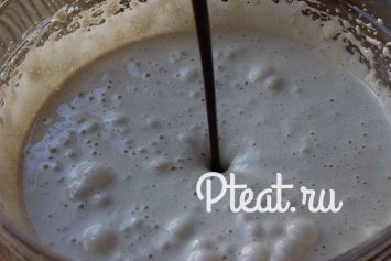 - Возвращаем эту смесь с основное тесто и еще раз аккуратно перемешиваем до однородности.