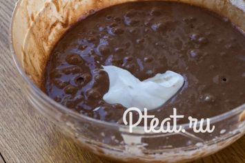- Получившуюся меренгу вводим в шоколадную массу и перемешиваем аккуратными складывающими движениями снизу вверх до однородного состояния.