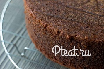 Многие из вас уже знакомы с этим рецептом. Этот бисквит самый старенький и повидавший виды шоколадный бисквитик. Я часто вам его советую. Сама его в очередной раз пекла буквально 2 дня назад. Он настолько насыщенный сам по себе, что не требует, в отличие от ванильного, множества «добавочных материалов». Вот, для последнего торта я просто пропитала его сиропом и прослоила кремом с маскарпоне. Получилось по-простому гениально.