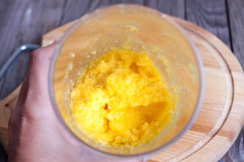 Дольки апельсина переложите в блендер и превратите в пюре.