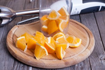 Тщательно вымойте апельсин среднего размера. Разрежьте его на кусочки и удалите косточки.