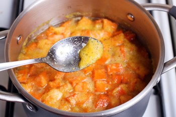 Ставьте кастрюлю на огонь, доводите до кипения, уменьшайте газ и проваривайте около 5 минут. Выключайте газ, ждите остывания тыквы. В идеале – полдня. Минимум – 2-3 часа.