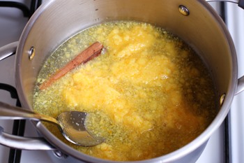 - Соединив в одной емкости сахар, воду и специи, сварить концентрированный сироп.