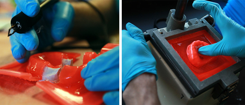 Когда слепок сформирован надо поместить капу в холодную воду для затвердевания.