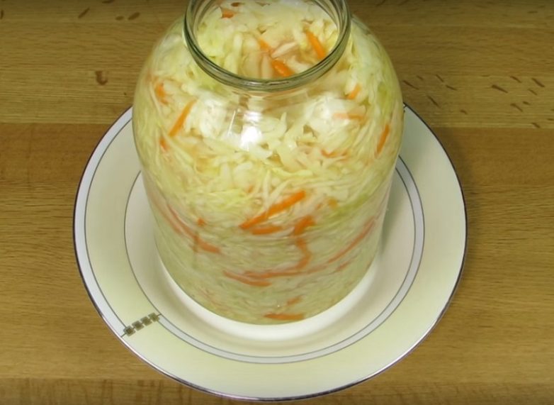 - Через три дня капуста будет готова, ее можно разложить по стеклянным банкам и убрать в холодильник или подвал.