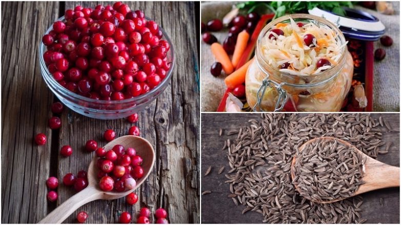 - клюква и брусника — по горсти;
