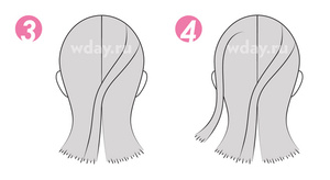 Еще одним интересным вариантом плетения является тот, где вы должны зачесать ваши локоны в низкий хвостик и перевязать резинкой. А затем действуете по рисунку расположенному внизу текста.