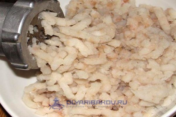 - Подготовленное филе пропустите через мясорубку 2 или 3 раза. Обязательно проверьте, чтобы в массе не было больших костей.