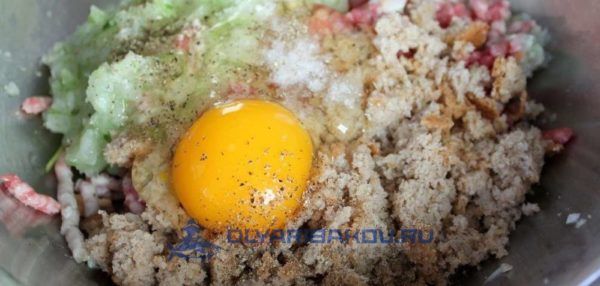 - Смешайте все со специями и яйцами.