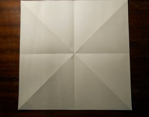 - Положите перед собой квадратный лист и согните его по горизонтали, вертикали и 2 раза по диагонали.