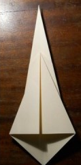 - Потяните нижний угол в правую сторону и совместите кромочку получившегося треугольника с серединой будущего меча.